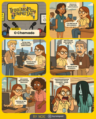 Transformamos situações reais do dia a dia das empresas em quadrinhos leves e divertidos, mostrando o lado cômico (e às vezes absurdo) do mundo da TI.