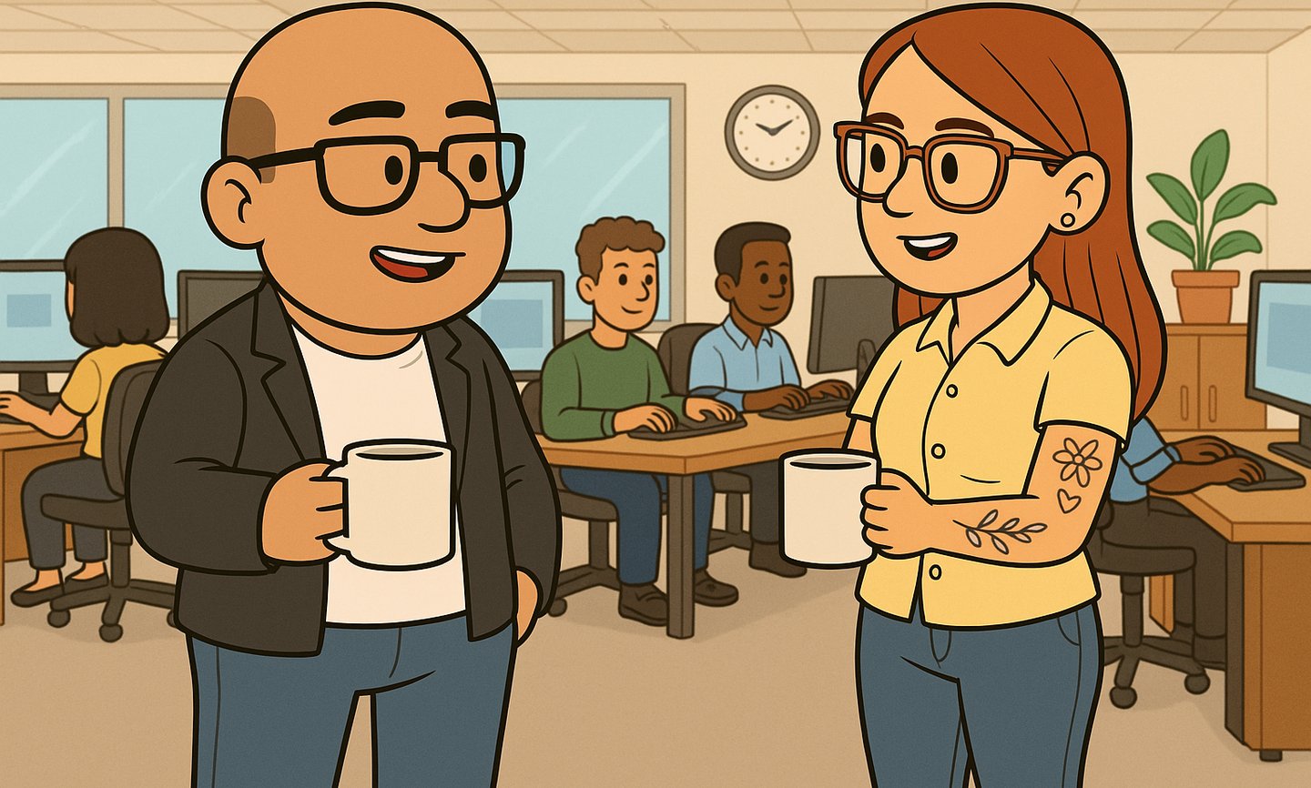 Dividindo essa jornada está Jacqueline Nascimento, que soma 20 anos de experiência em tecnologia e recursos humanos. Juntos, transformam situações reais em conteúdos divertidos e reflexivos, sempre com a sensibilidade de preservar nomes, empresas e pessoas envolvidas. Afinal, todas as histórias são reais, mas os personagens são fictícios.